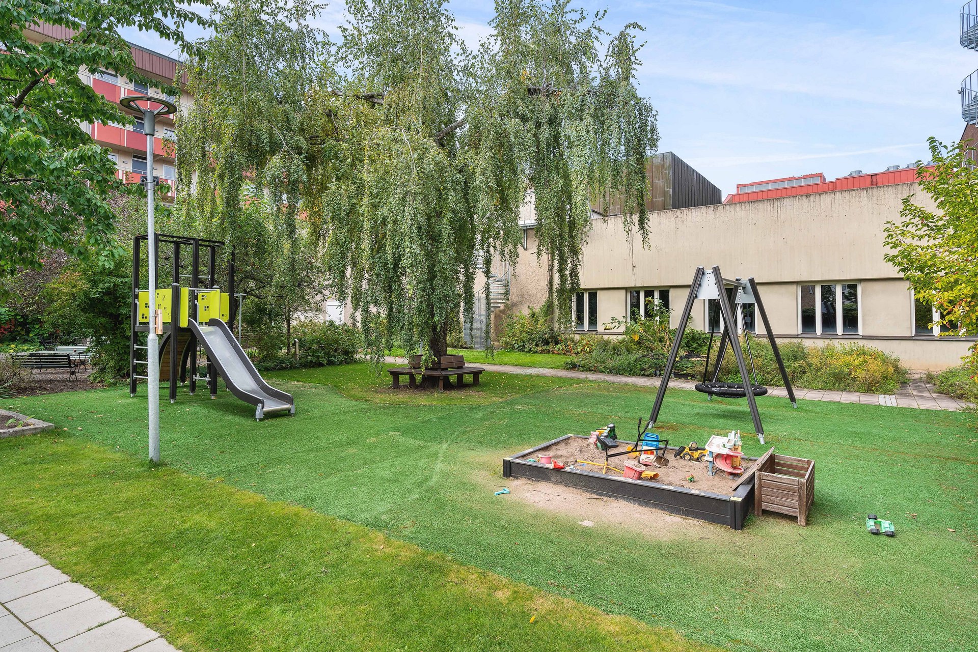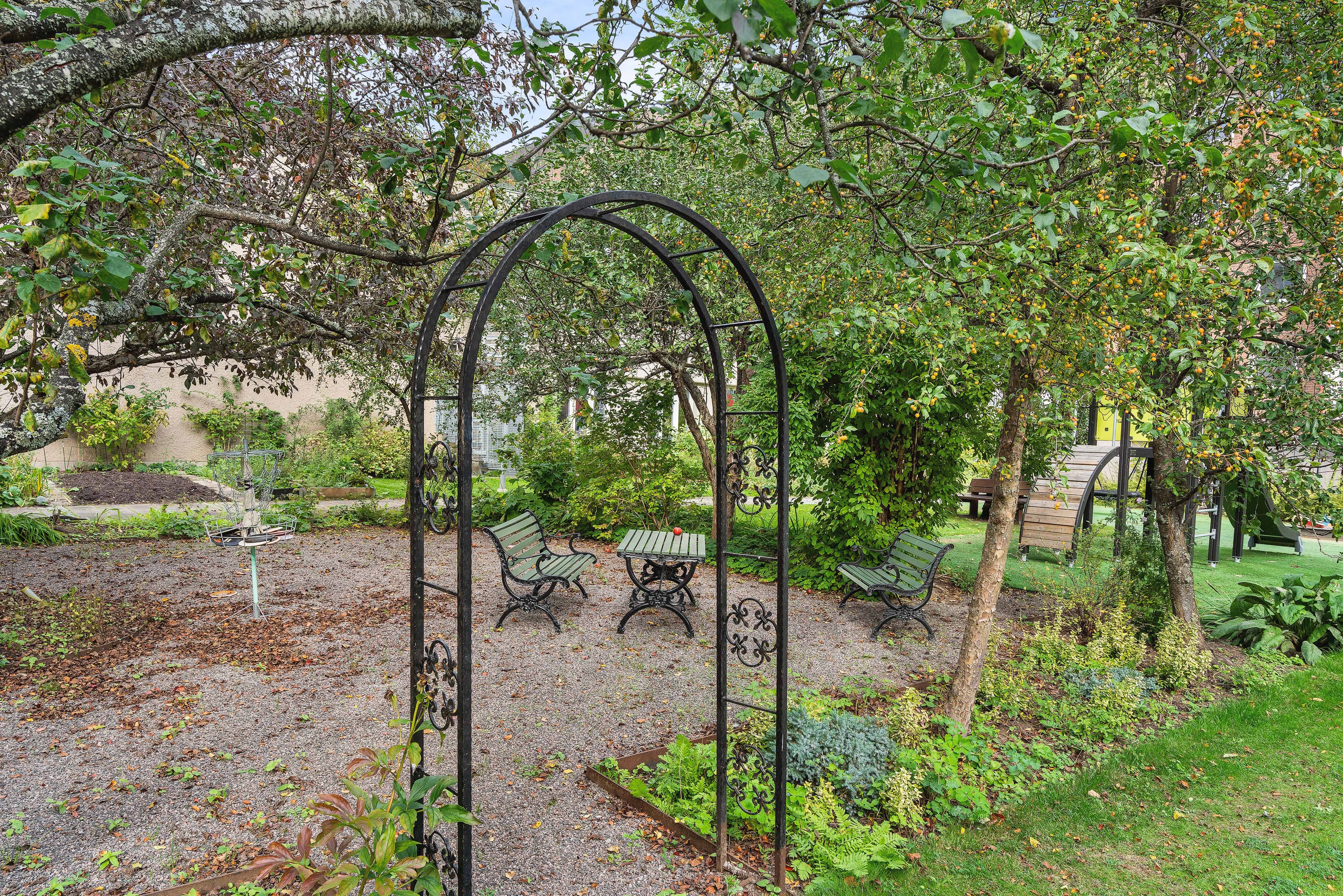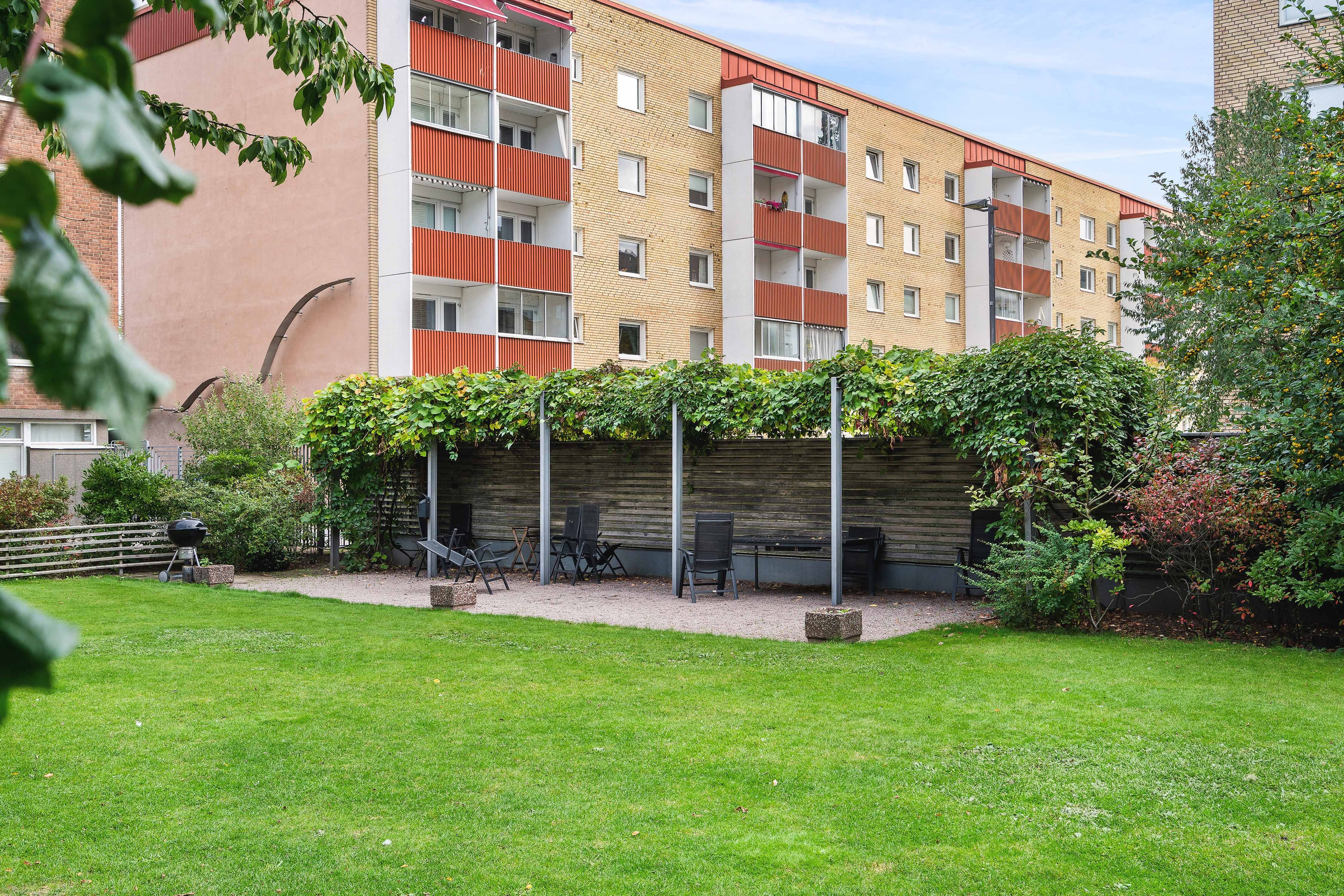 Föreningen är välskött med låg belåning och mycket inkluderat i avgiften. På den gröna innergården finns grillplats, lekplats och trädgårdsmöbler som bara medlemmarna får använda. Här erbjuds även kolonilotter, bastu, övernattningsrum, samlingslokal och cykelrum – samt lättillgänglig korttidsparkering.