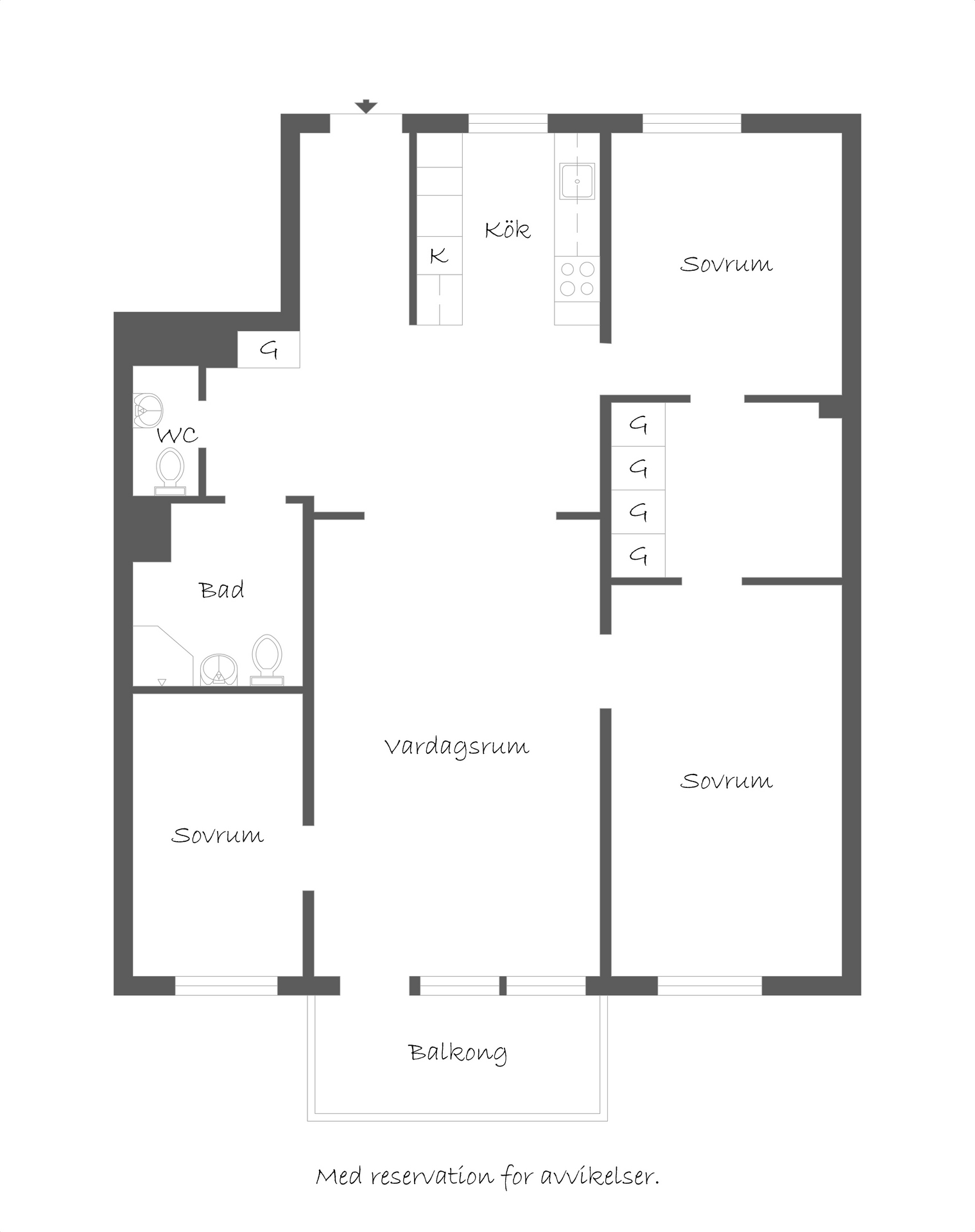 Lägenheten rymmer tre bra sovrum, varav det största har plats för dubbelsäng. De mindre rummen fungerar lika bra som barnrum, gästrum eller hemmakontor. Dessutom finns en rymlig klädkammare som med enkelhet kan förvandlas till en lyxig walk-in closet. Vidare finns ett fräscht badrum med dusch samt en separat gästtoalett – en uppskattad bekvämlighet.