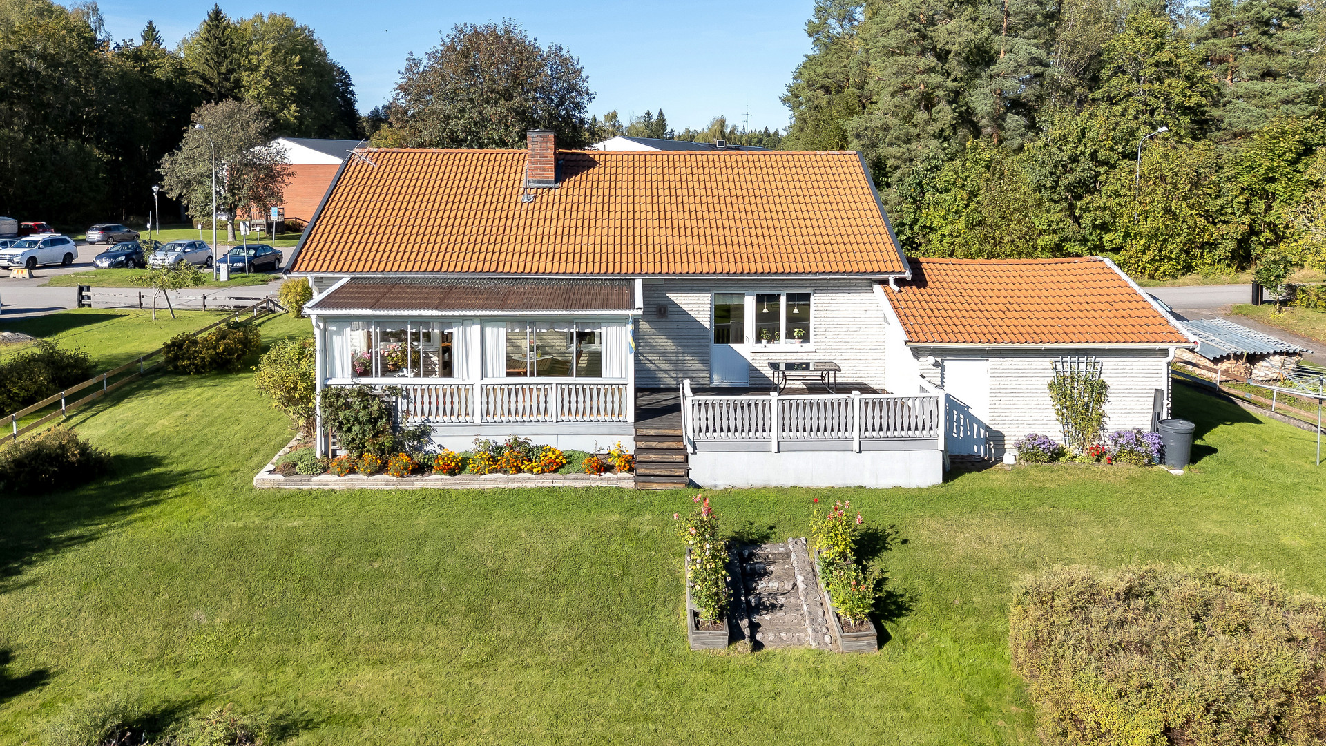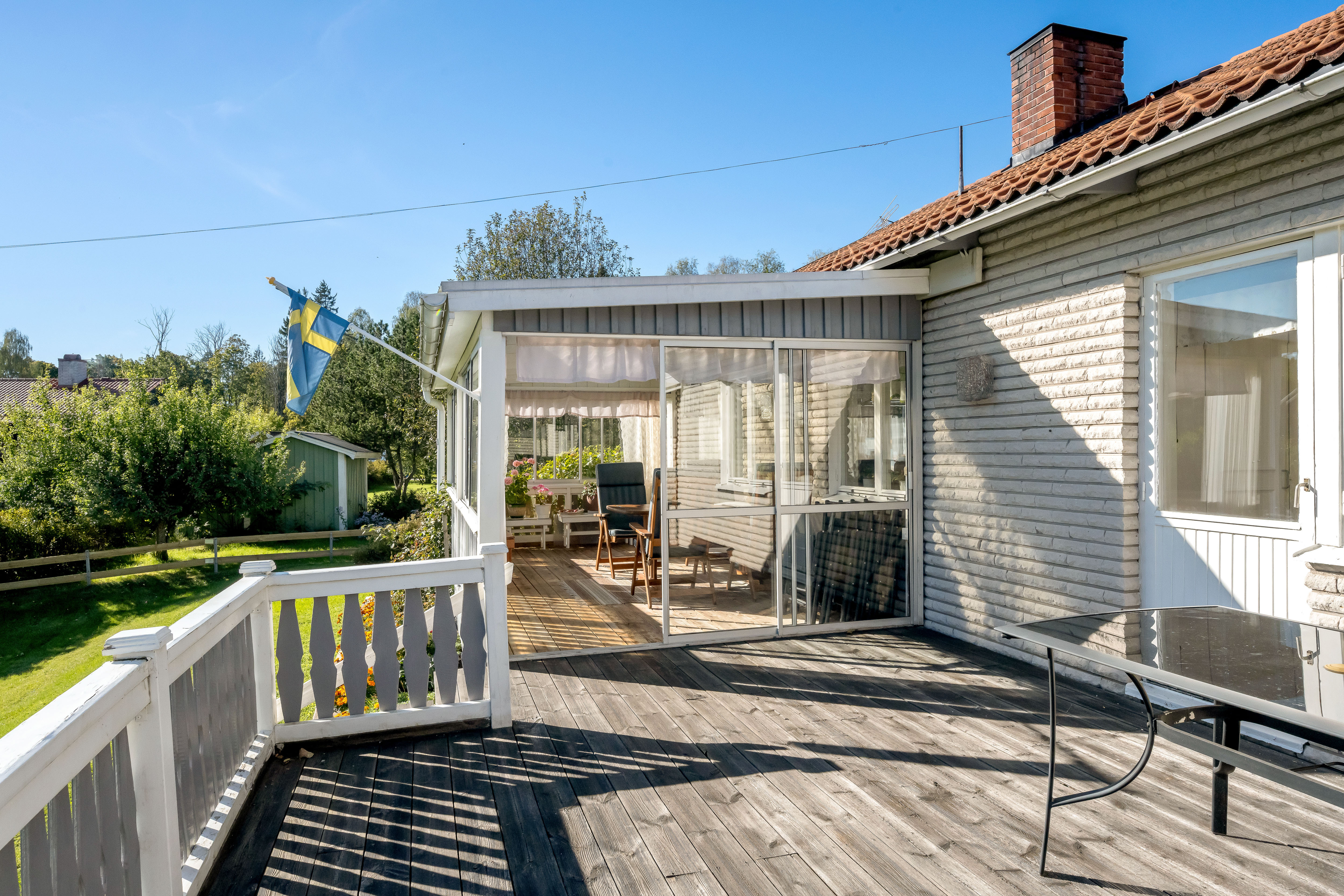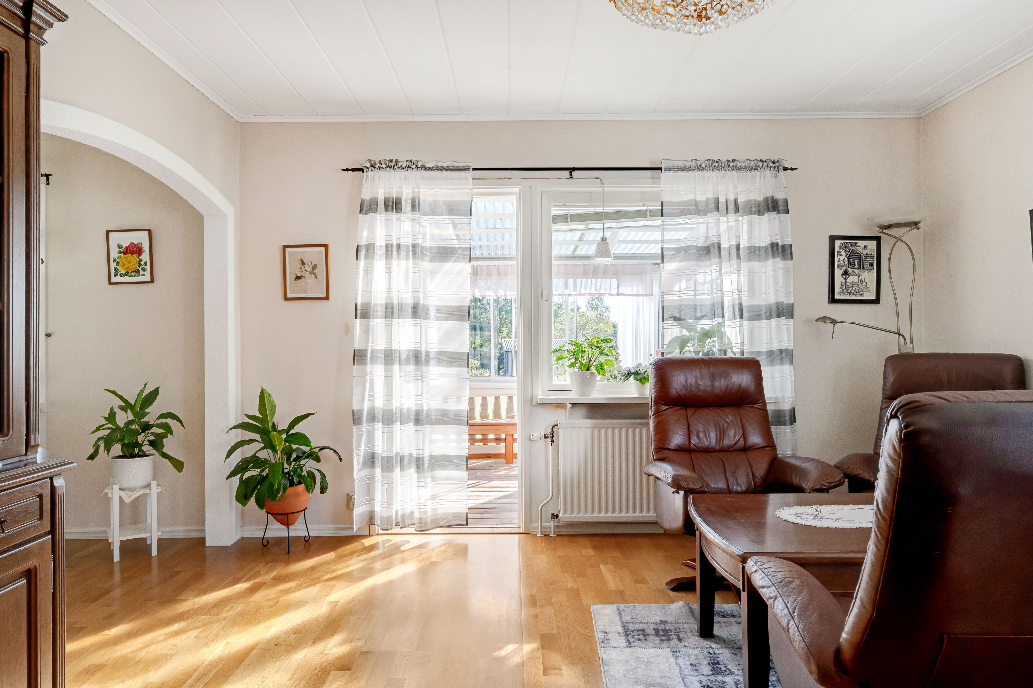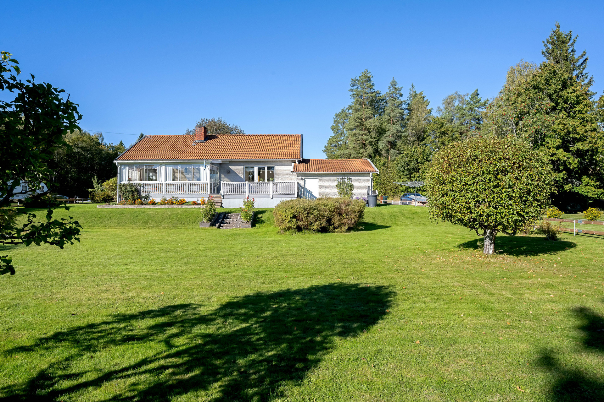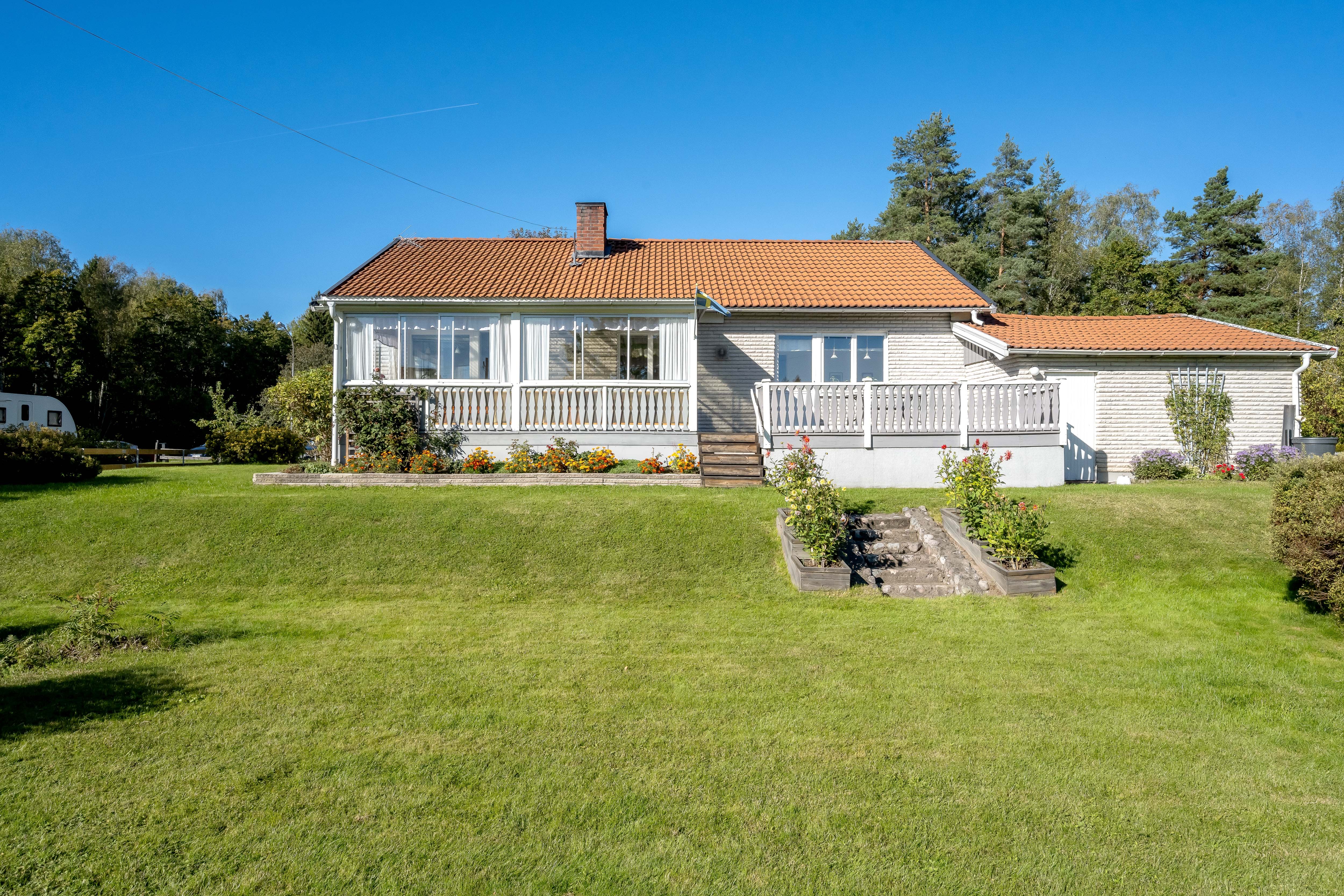 Här möter vi hösten i en luftig och mycket välhållen 1970-tals villa med både öppen spis och bastu som värmer gott kyliga dagar. Ingrid Marie och Cox Pomona skördas direkt från trädgården till pajbaket och fyller på den egna matkällaren. Huset rymmer hela 200 trivsamma kvadratmetrar i entré- och källarplan att disponera efter egna behov och önskemål. Harmonisk färgsättning präglar bostaden som rymmer två sovrum, fräscht badrum och generösa sällskapsutrymmen i matsal, vardagsrum och rymligt kök som flödar av ljus. Utgång via vardagsrum och master-bedroom till inglasat uterum och rymlig altan mot trädgården.