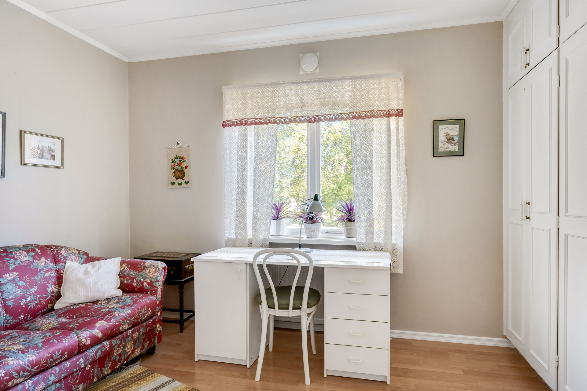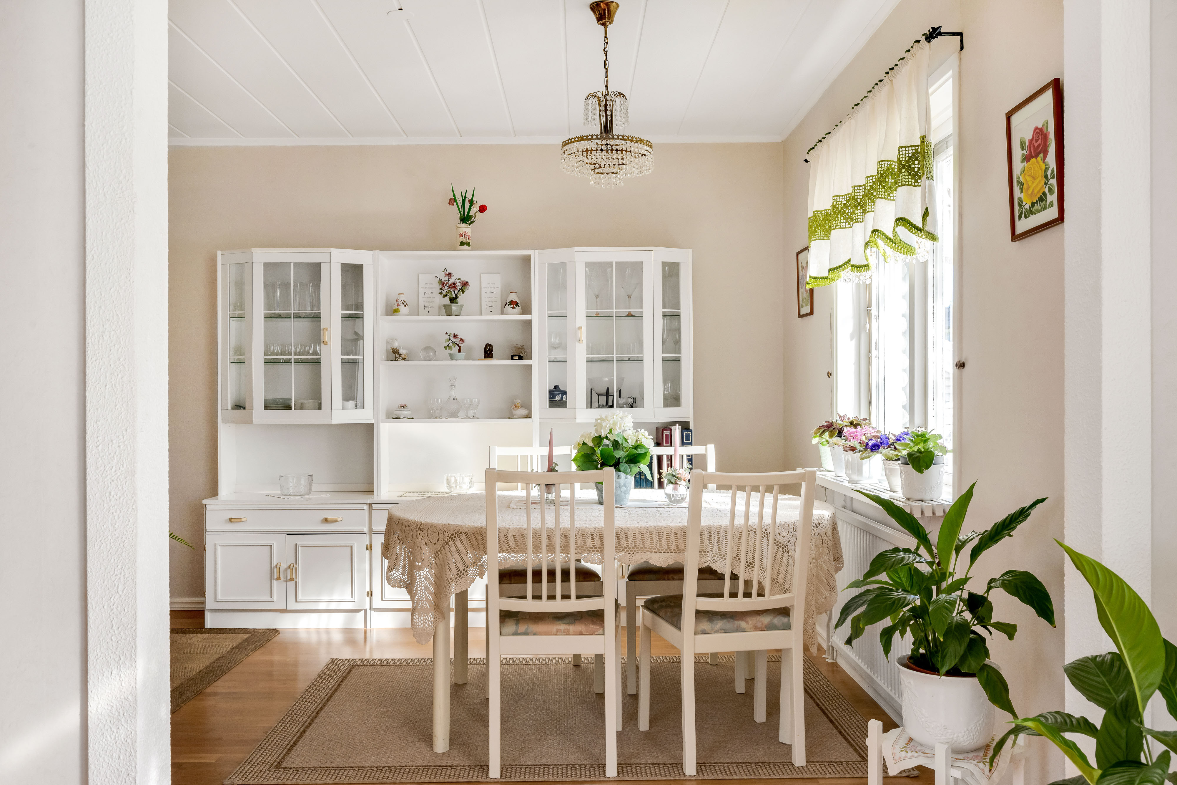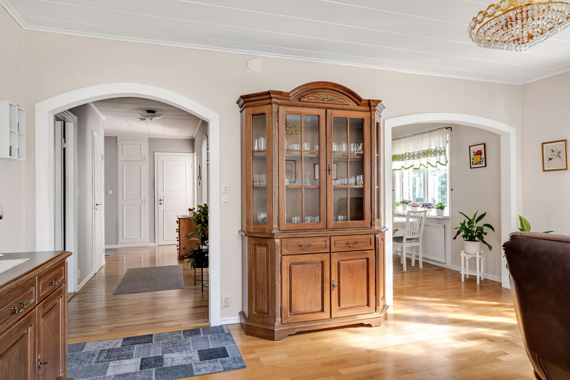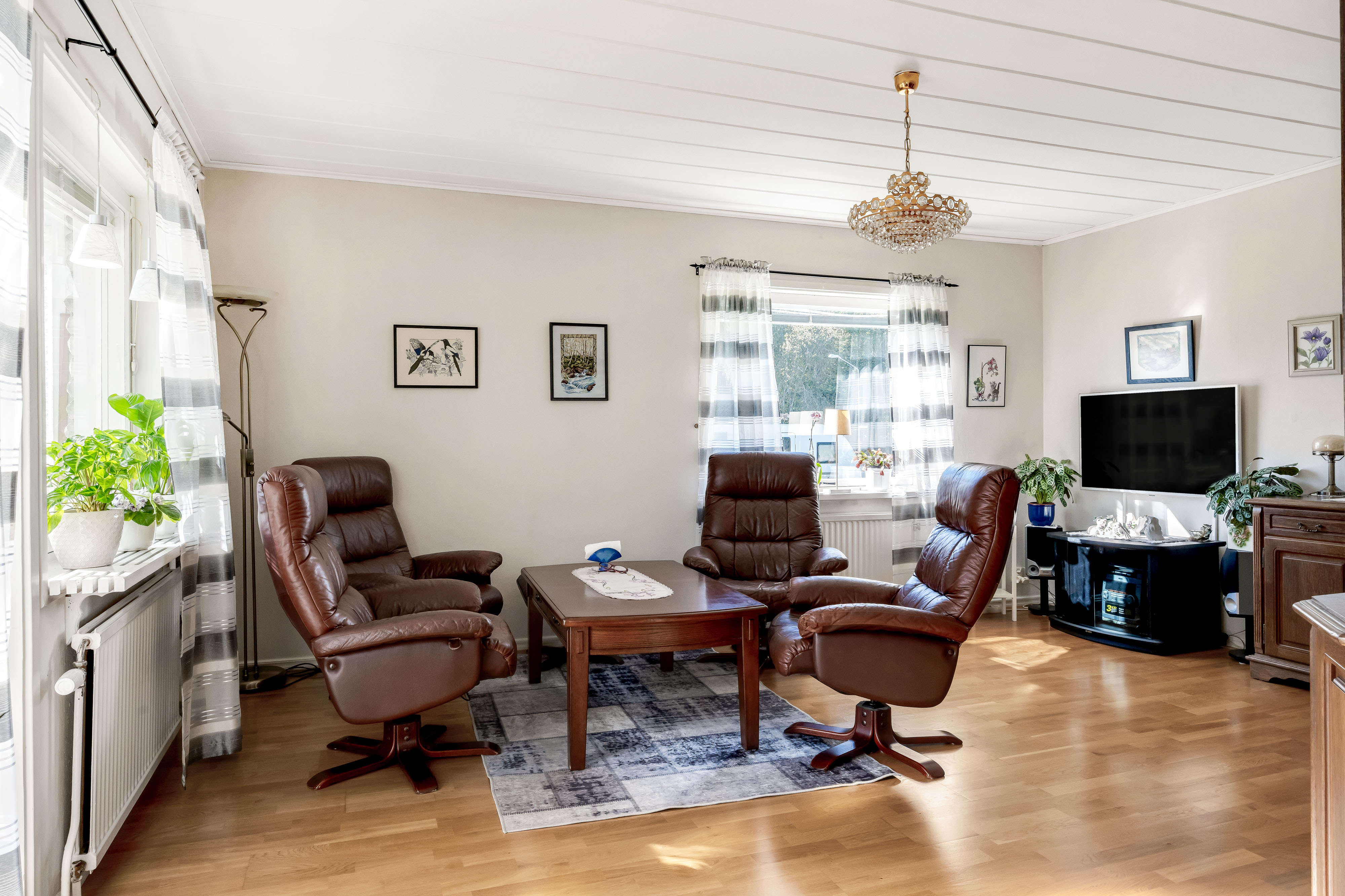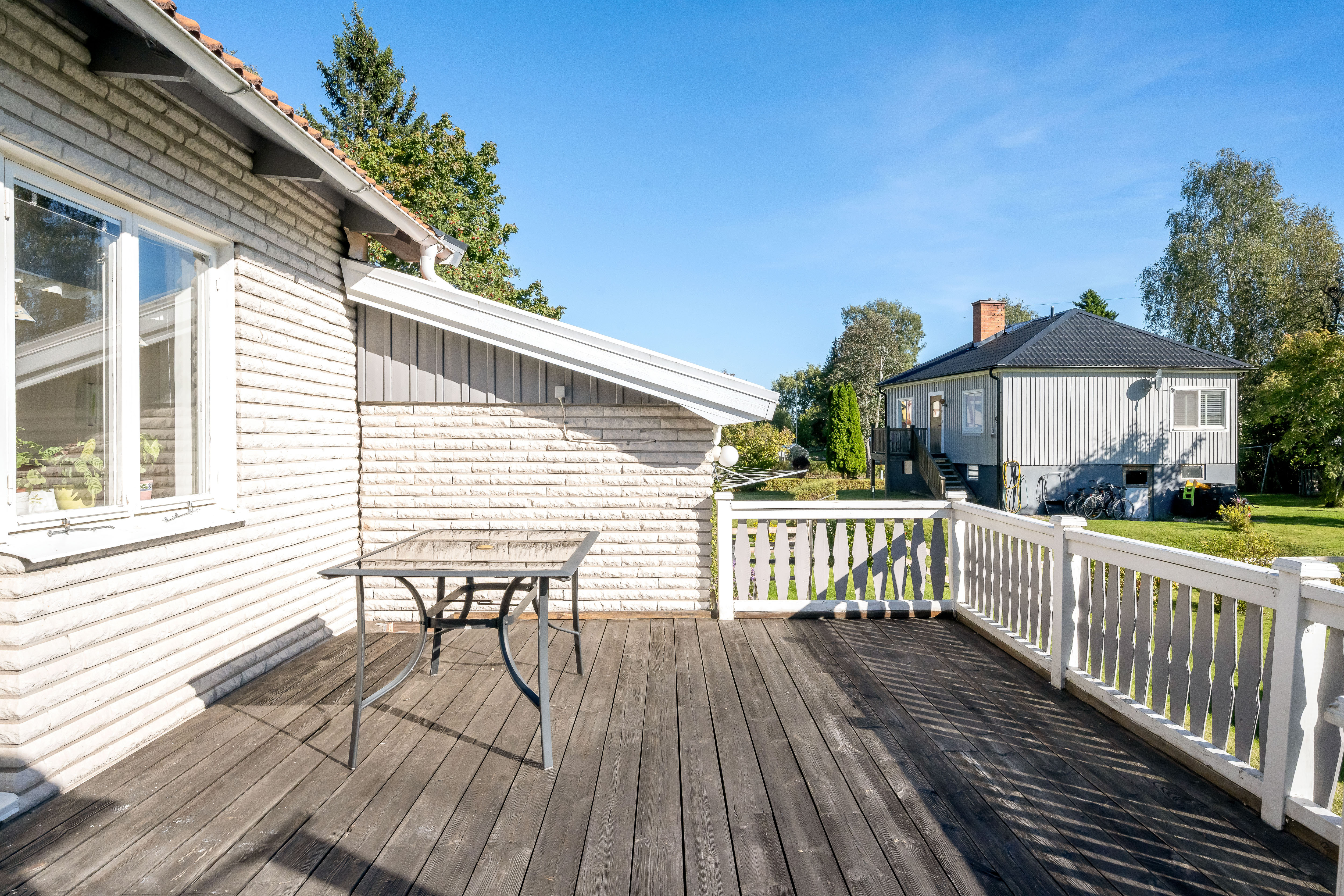 Här möter vi hösten i en luftig och mycket välhållen 1970-tals villa med både öppen spis och bastu som värmer gott kyliga dagar. Ingrid Marie och Cox Pomona skördas direkt från trädgården till pajbaket och fyller på den egna matkällaren. Huset rymmer hela 200 trivsamma kvadratmetrar i entré- och källarplan att disponera efter egna behov och önskemål. Harmonisk färgsättning präglar bostaden som rymmer två sovrum, fräscht badrum och generösa sällskapsutrymmen i matsal, vardagsrum och rymligt kök som flödar av ljus. Utgång via vardagsrum och master-bedroom till inglasat uterum och rymlig altan mot trädgården.