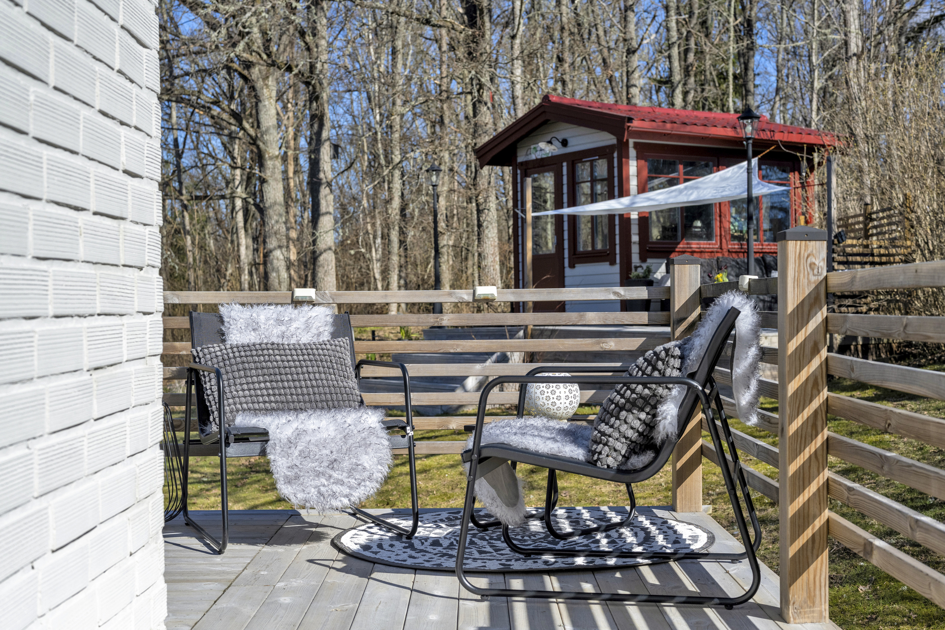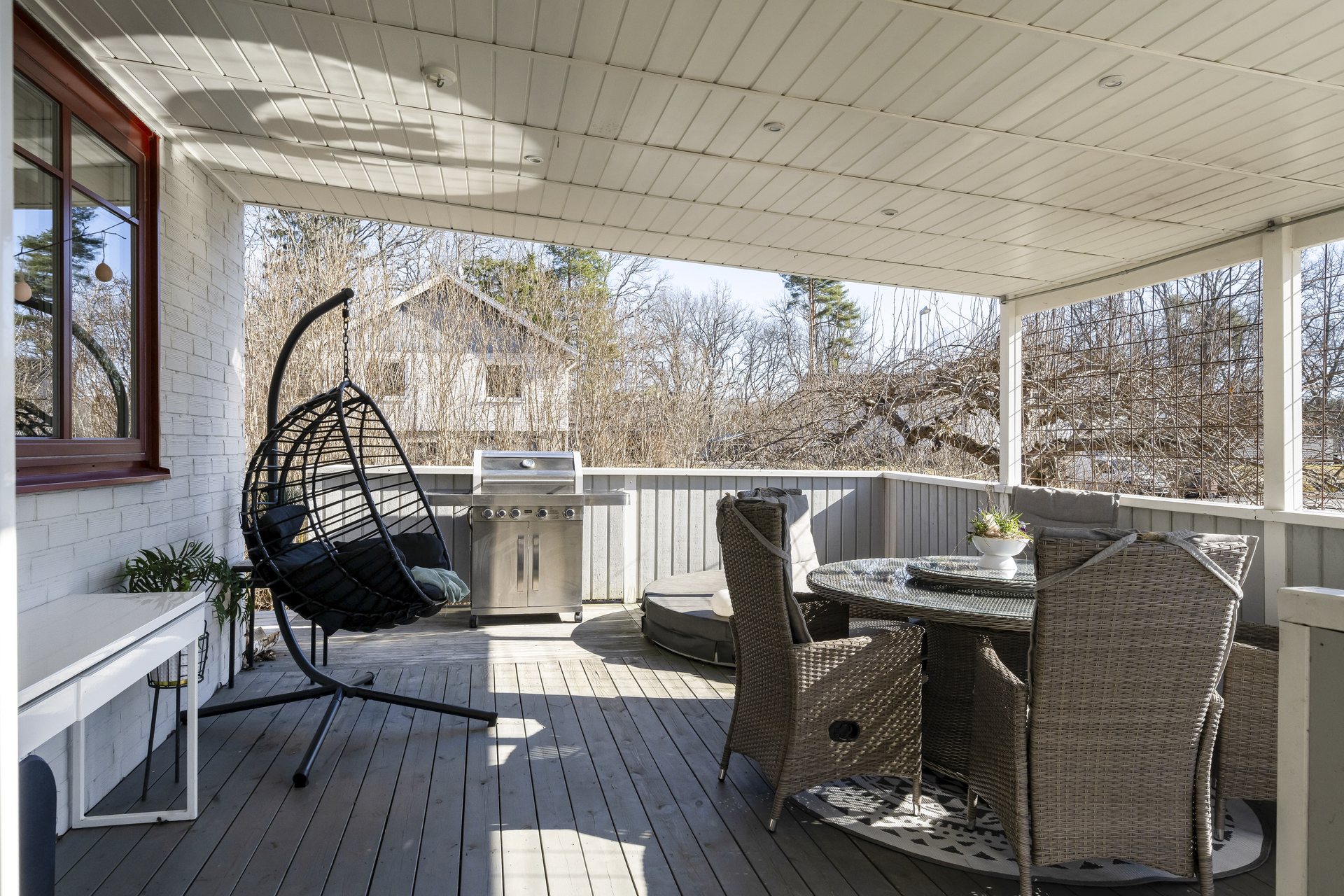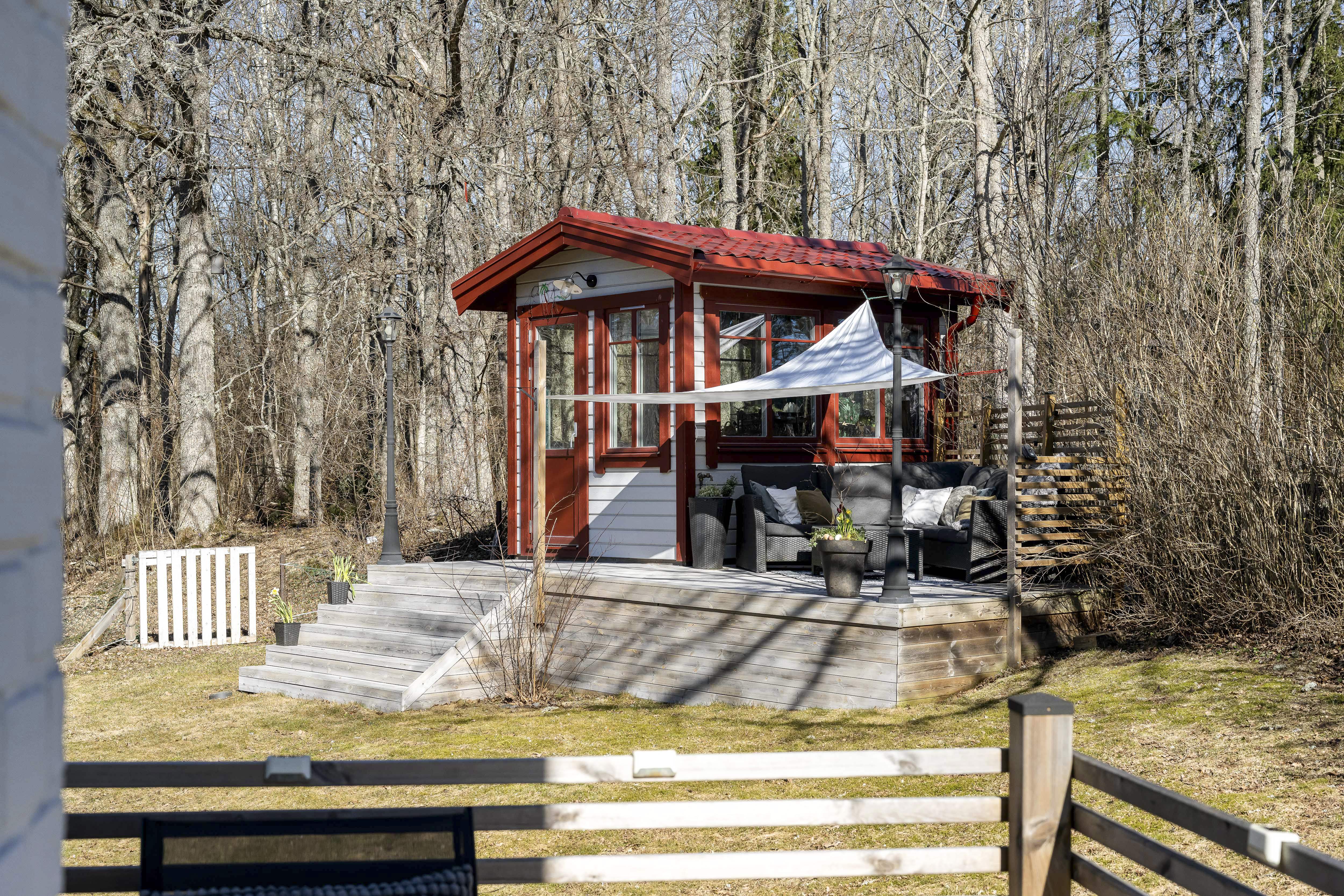 + Ute möter inne, där veranda och trädgård blir en del av bostaden via trädäck som löper runt huset. Inglasat uterum och lite av en amerikansk veranda med spabad på öppet trädäck invid husets framsida. Nytt gaveldäck leder vidare till en köksbalkong med trappa till trädgården invid husets baksida. Lusthus på tomtens högsta punkt med vidbyggt trädäck som vetter mot skogsparti där barnen bygger kojor och du följer årstids-växlingarna från första parkett. Här bor du i lugna och barnvänliga villakvarter med naturen ständigt närvarande. Avståndet till Österbybruk där skola årskurs F-9 samt allehanda samhällsservice finns är ca 3 km. Huset är besiktigat. Varmt välkommen på visning!