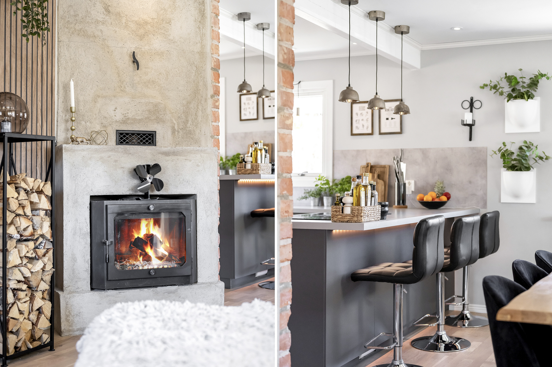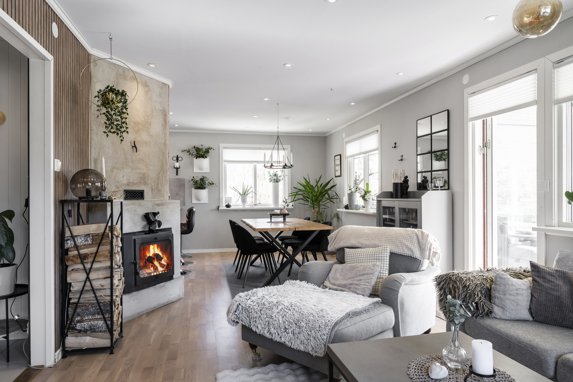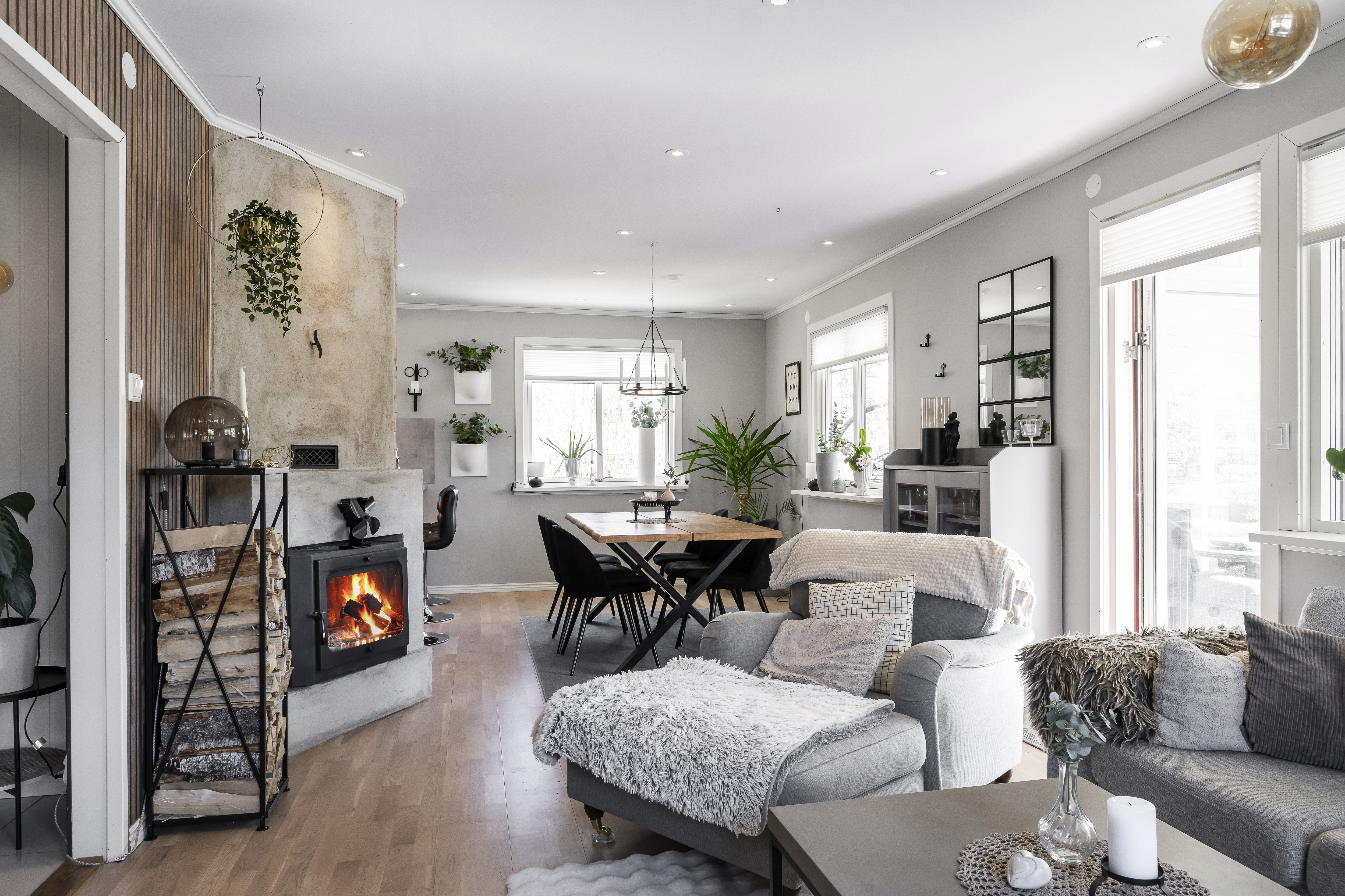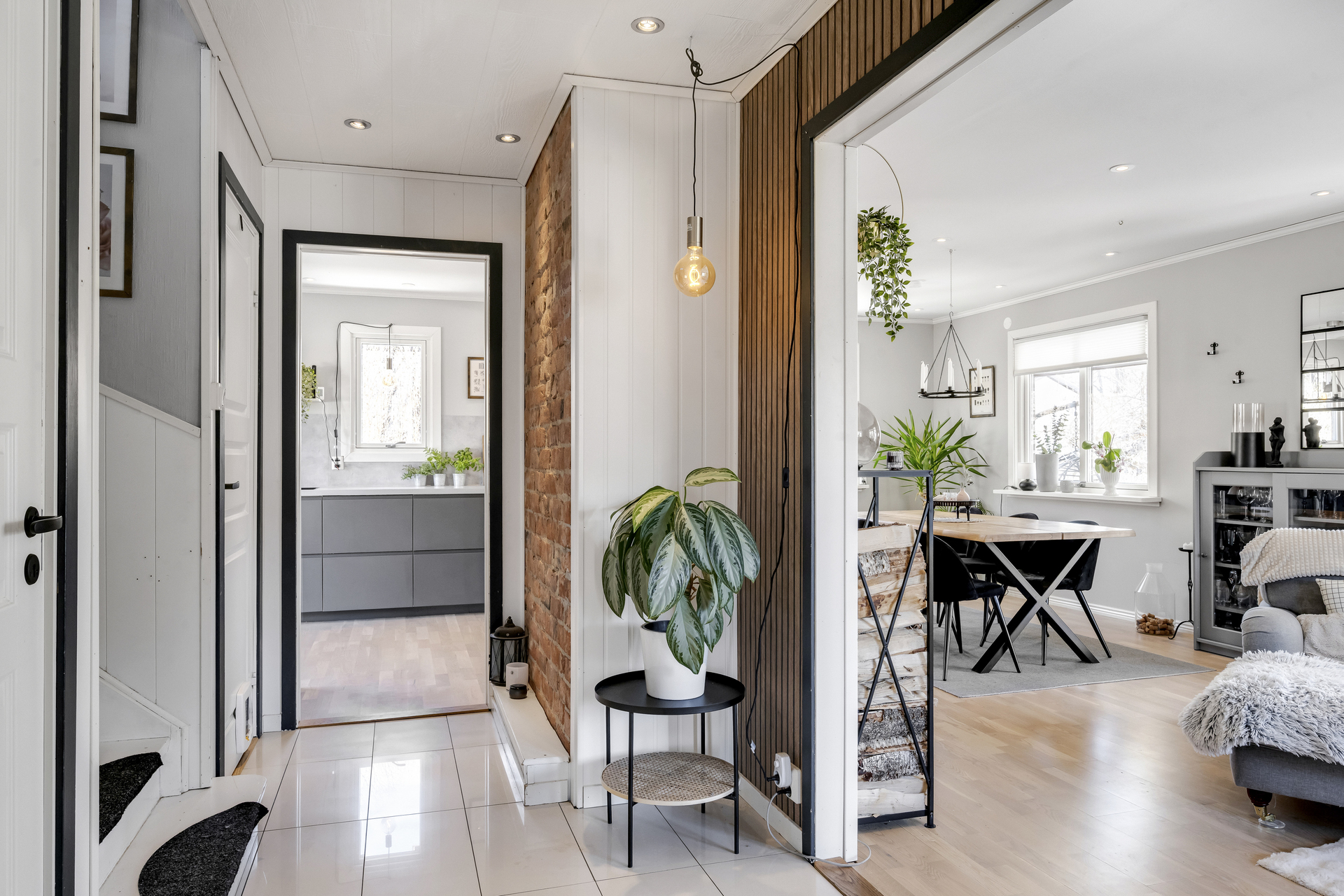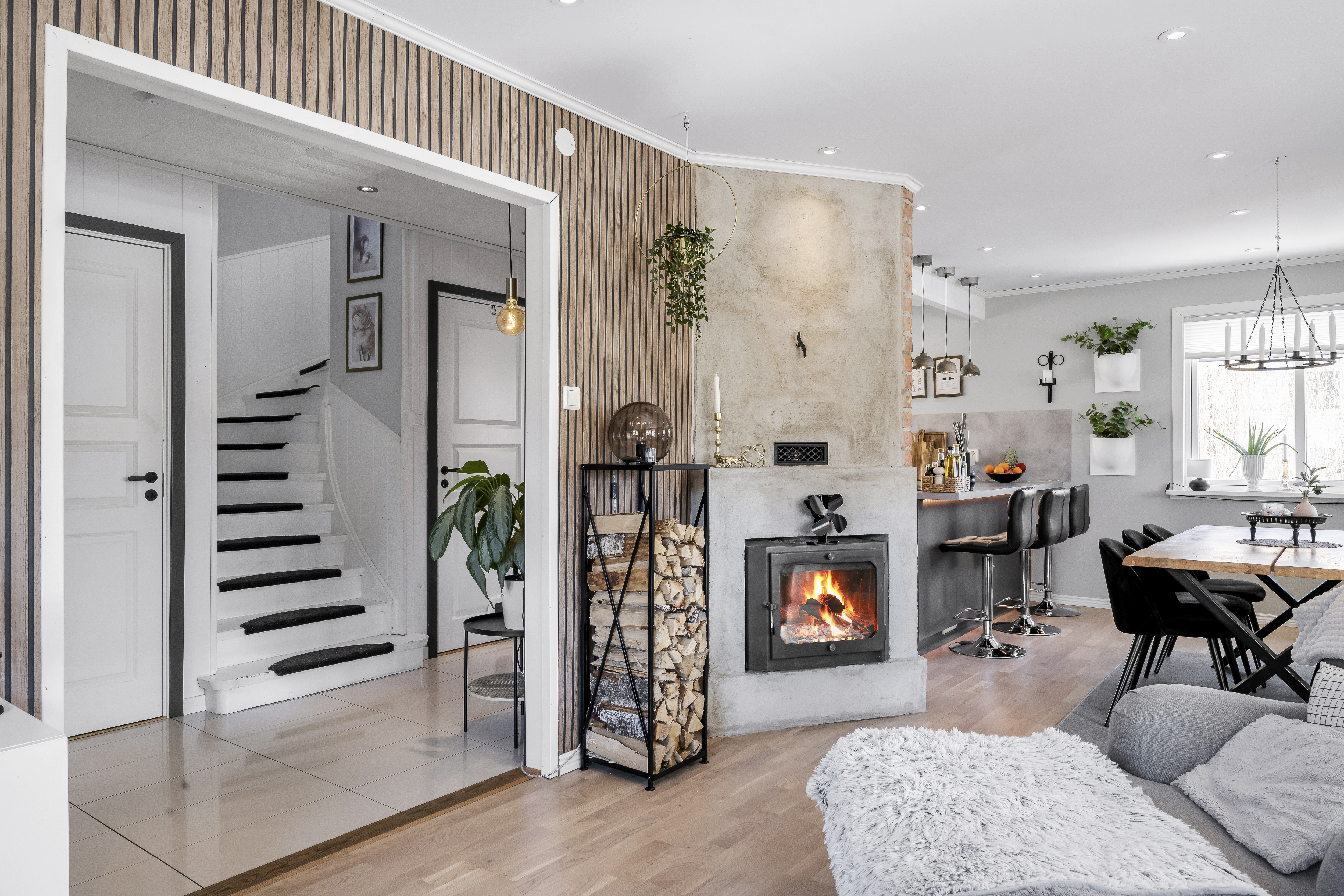 1,5- plans villa med ny öppen planlösning i sällskapsdelen där en öppen spis med insats välkomnar strategiskt placerad mellan lounge och matsal. Nytt kök med bistrokänsla och trädgårdsbalkong mot gården möter matsalen med öppen bardel. Övre plan inrymmer två karaktäristiska sovrum under snedtak och ett sovrum med karaktären av "egen lya" inryms i källarplanet som är fint integrerat med boarean i övre plan, Ett fjärde mindre sovrum eller kontor inryms även i källarplan liksom egen groventré och en fräsch och rymlig tvättstuga. Duschutrymmen i två plan & WC i samtliga tre plan. Ny VA, ny el, nya fönster, uppvärmning via ny luft/vatten värmepump (2024) samt bevarad vedanläggning tryggar en effektiv driftekonomi. Fiber finns installerat i fastigheten.